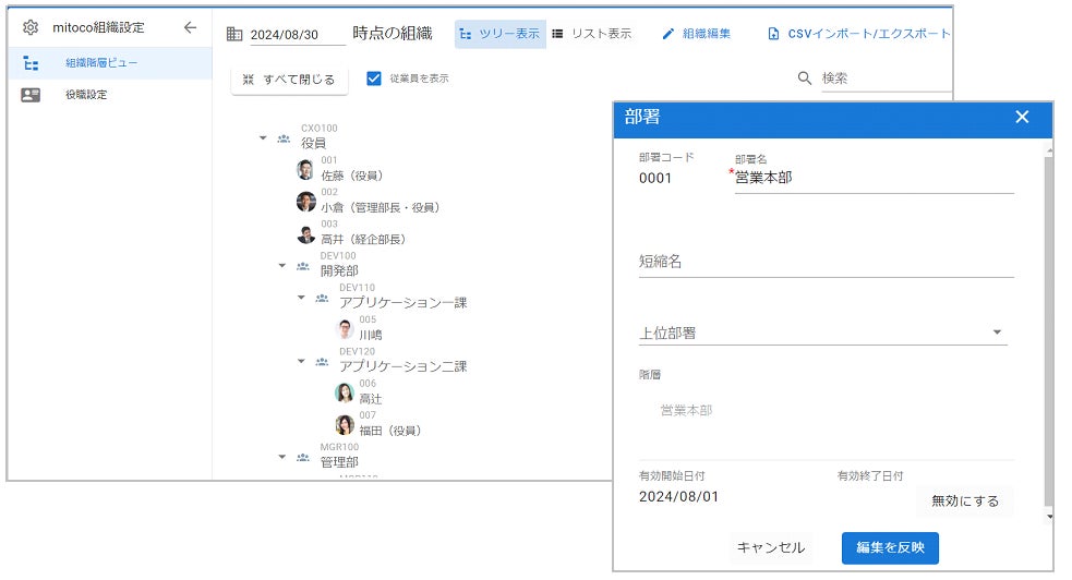 世代管理もできるため、組織改編の際はあらかじめ新しい組織を作成しておいて、スムーズに移行させることができます。