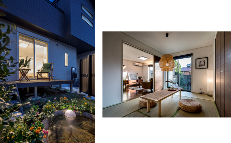 清瀬市の自然をイメージし、ヒイラギをシンボルとしたビオトープガーデンと、そこに繋がるオープンリビングのある住まいをデザインしました。この住まいは自然とともに成長することの喜びという付加価値を与え、豊かな暮らしを演出します。