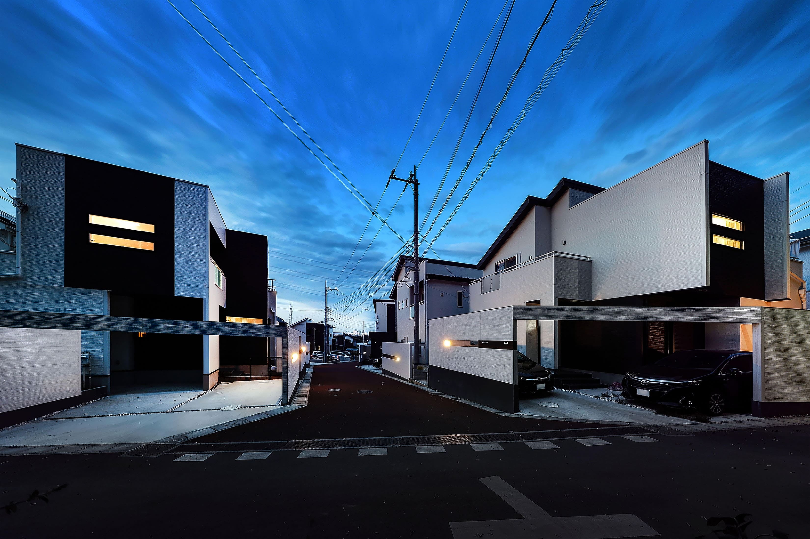 柏駅まで徒歩30分以上の厳しい環境に建つ戸建分譲住宅の計画です。荒れ地に覆われ一見魅力のない敷地環境でありましたが、土地の持つコンテクストを丁寧に読み取り、ここでしか成立しないコンセプトによって付加価値を高め、「城郭」と「とばり」をモチーフとした「オープンリビング」のデザインによって品格溢れる街並みを創出しました。