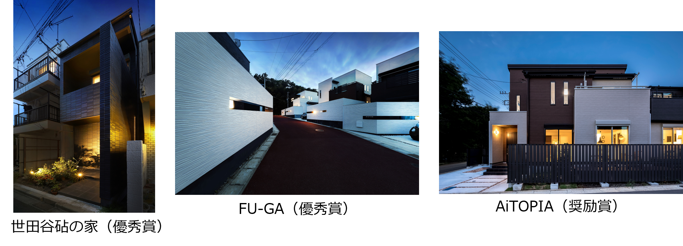 アイダ設計はこの度、建築家宮下信顕氏監修の元、設計・施工を手掛けた、間口僅か1間半未満のプレミアムな住宅「世田谷砧の家」、歴史ある白壁の武家屋敷をモチーフとして展開した「FU-GA」が優秀賞を並んで受賞し、自然と共に暮らすビオトープのある住まい「AiTOPIA」が奨励賞を受賞いたしました。