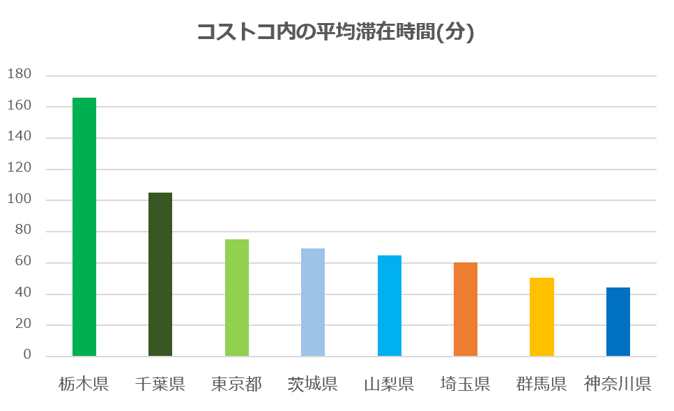 このことから、コストコへ来ているお客様は滞在時間内でしっかり店内を回遊しているということが推測できる。