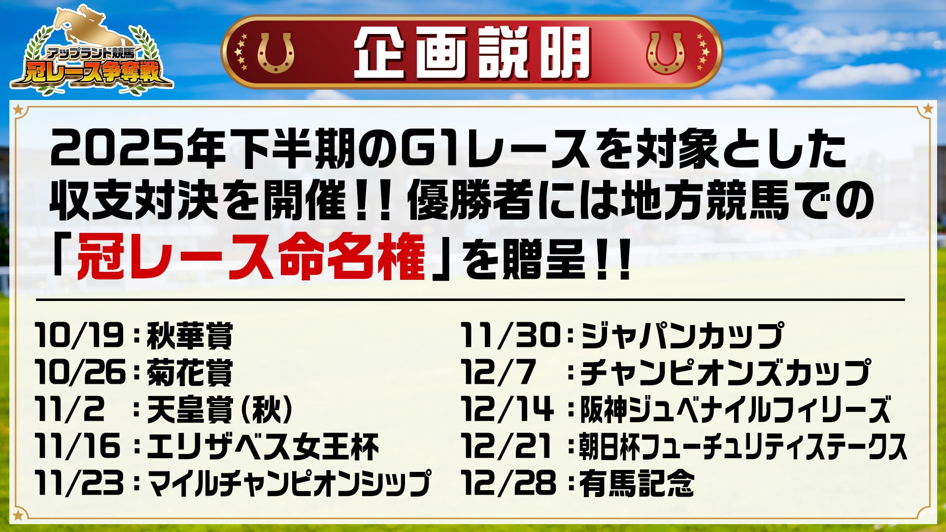 アップランド競馬冠レース争奪戦が10月19日(日)より開催中!
