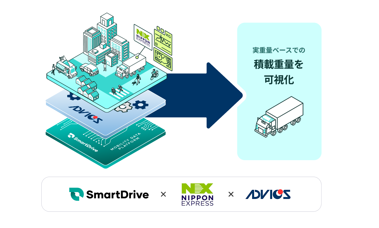 日本通運株式会社(本社:東京都千代田区、代表取締役社長:竹添 進二郎、以下「日本通運」)、株式会社アドヴィックス(本社:愛知県刈谷市、代表取締役社長:秋山 晃、以下「アドヴィックス」)、株式会社スマートドライブ(本社:東京都千代田区、代表取締役:北川 烈、以下「スマートドライブ」)の3社は、トラック車両の実重量ベースでの積載重量をデータ化し可視化する技術の実証実験(以下、本実証実験)を開始しました。
