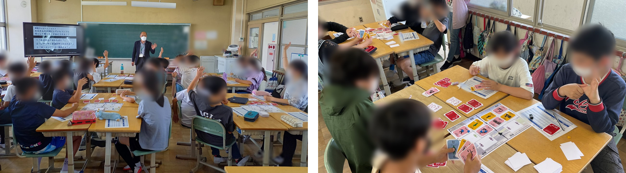 小学6年生の全3クラスを対象とした今回の体験授業では、12種類ある学習テーマの中から、コロナ禍で重要性が再認識されている「コミュニケーション」について実施し、物事の背景を考えて、限られた手元のカードを用いてどう相手に伝えるのがいいのかなどを学びました。実際の授業では、普段伝えられていないことを言語化する機会となり、日頃から大人しい生徒もゲームを通して積極的なコミュニケーションが生まれました。難しいテーマでも、座学とは異なり、ゲームを通して楽しんで学ぶことで、一緒に体験された先生方からは、「考えるきっかけとしての有効性は大いにある」「頭だけで理解していても実際にやってみることは大切」といったご意見もありました。また、今回の体験授業では当社担当が授業を実施しましたが、同教材を使用することで先生方も同等のクオリティで授業を行うことが可能です。実際に、「授業はゼロベースから考えるのが大変なため、こういった教材を活用することで現場の業務効率化にも繋がる」といった声も寄せられました。