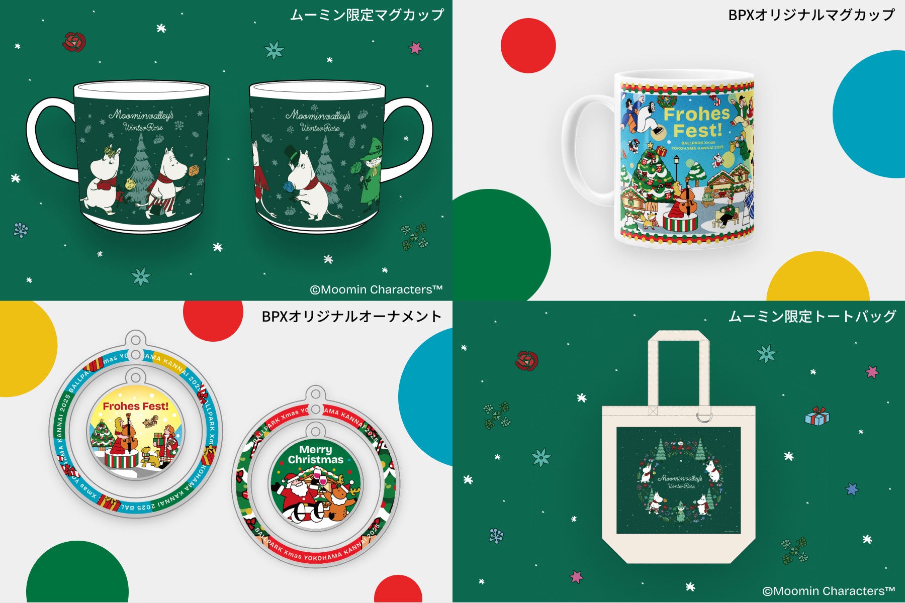 「Goods Area(グッズエリア)」では5店舗が出店し、スノードームやキャンドルホルダー、クリスマスリースなどの雑貨に加え、「ムーミン」とのコラボレーションによる本イベント限定デザイン「Moominvalley's Winter Rose」シリーズのオリジナルグッズ、「Happy holidays!」を意味するドイツ語「Frohes Fest!」をデザインに採用したBALLPARK Xmas公式グッズも販売予定です。