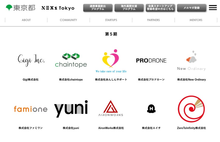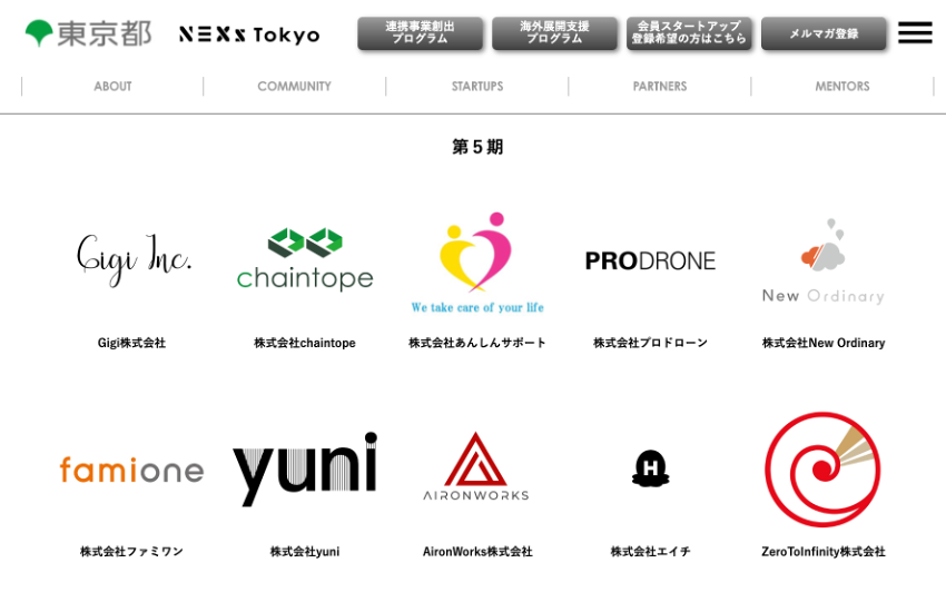 第5期採択企業紹介ページ https://nexstokyo.jp/student/?term=period_05