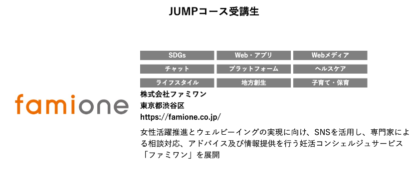東京都によるスタートアップ支援「NEXs Tokyo 連携事業創出プログラム」のJUMP事業展開コースに、ファミワンが採択されました