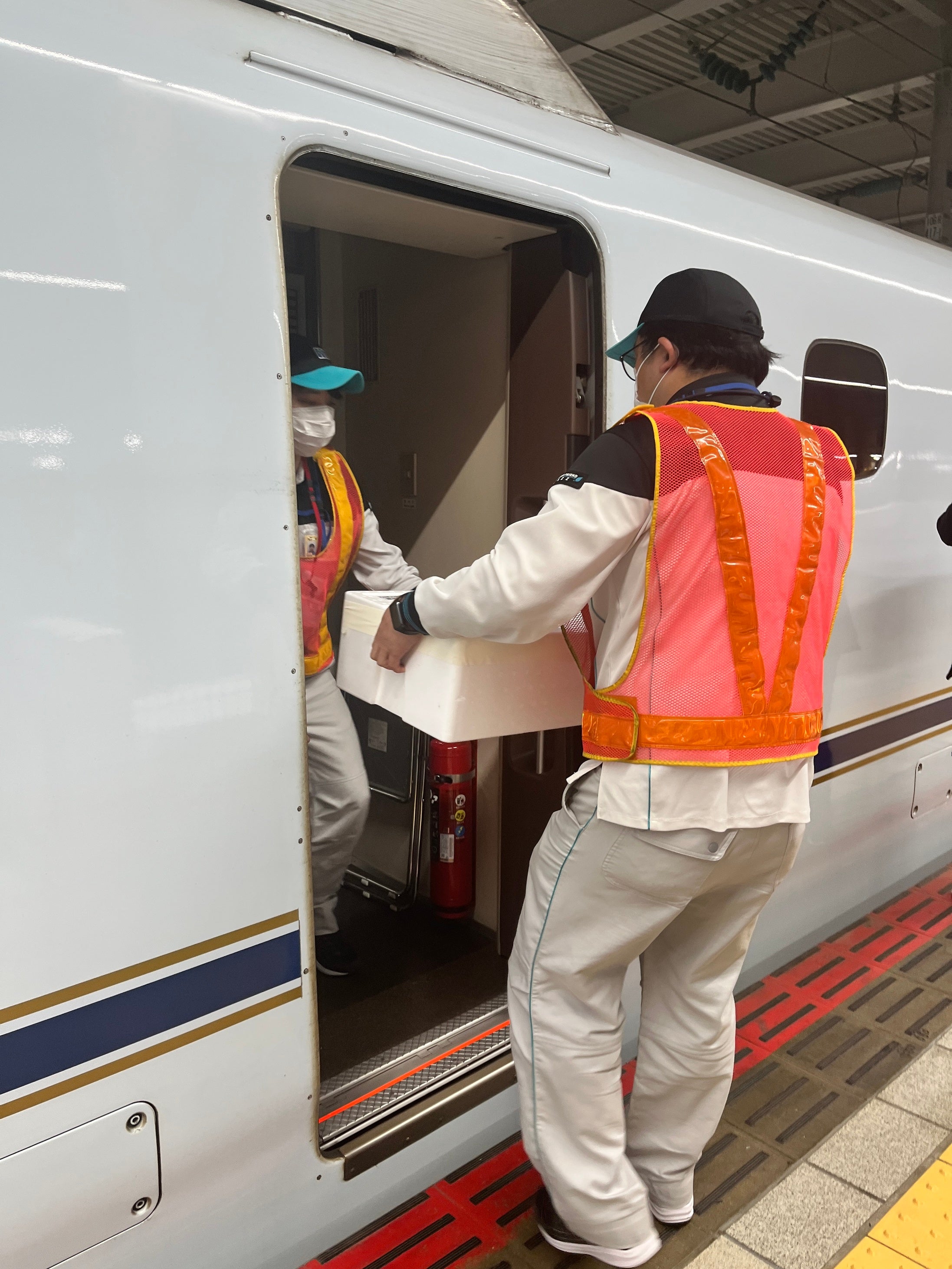 本事業は、新幹線荷物輸送の特長である安定性・速達性を最大限に生かした事業であり、宗像市鐘崎漁港で当日水揚げされた玄界灘の新鮮な魚を当日中に大阪のお客様に提供することができます。関西エリアにおいて、新幹線を使って鮮魚を定期輸送して販売する初めての取り組みとなります。