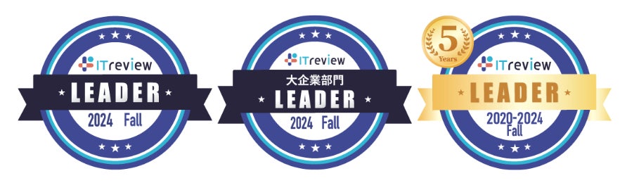 10月に発表された「ITreview Grid Award 2024 Fall」では、ITreviewに集まった約13.1万件のレビューをもとに、顧客満足度と認知度の双方が優れた製品を「Leader」として表彰、バッジが発行されています。ITreviewのLeaderは、多くの利用者から支持を得ている証であり、名誉ある称号です。