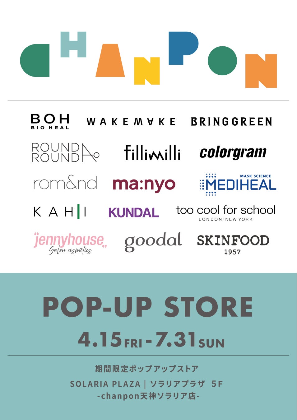「OLIVE YOUNG」でも人気のコスメが福岡に集結! コスメセレクトショップ「CHANPON」 天神ソラリアプラザに期間限定オープン