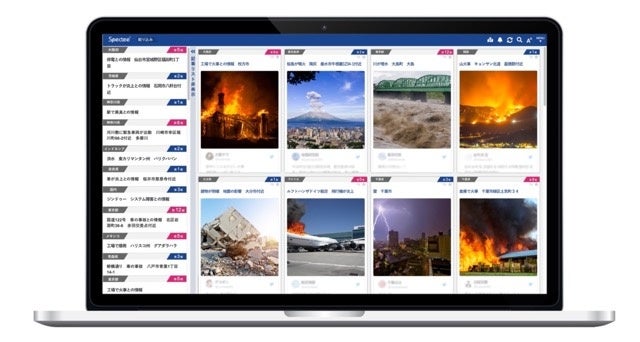 スペクティが開発・提供する「Spectee Pro」は、AI技術を活用し、世界中のSNSや、自動車のプローブデータ、河川・道路などに設置されたカメラのデータ等をリアルタイムに解析し、災害や危機に関する情報を収集、通知、可視化・予測できるリスク管理ソリューションです。