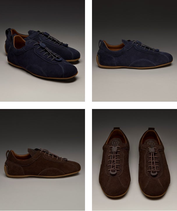 ダークチョコレートとミッドナイトブルーのリッチでしなやかなカーフスエードを使用し、柔軟で薄型のラバーソールが植物由来の人間工学に基づいたフットベッドと組み合わされ、比類のない快適さとスタイルを提供します。