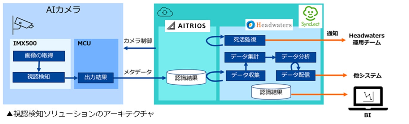 AIソリューション事業を手掛ける株式会社ヘッドウォータース(本社:東京都新宿区、代表取締役:篠田 庸介、以下「ヘッドウォータース」)は、ソニーセミコンダクタソリューションズ株式会社(以下、SSS)が提供するエッジAIセンシングプラットフォーム「AITRIOS™」(※1)とインテリジェントビジョンセンサー「IMX500」(※2)を活用した視認検知ソリューションの導入支援サービスを開始しました。