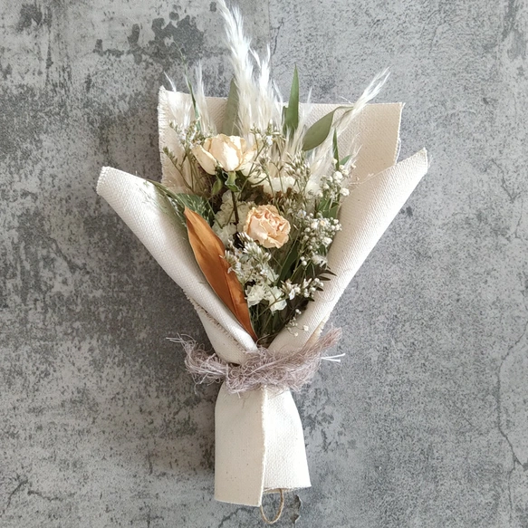 静岡県の遠州織物と、遠州織物を作るときに出てしまう“布耳”の風合いを活かしたブーケ。好きな色を選べます。