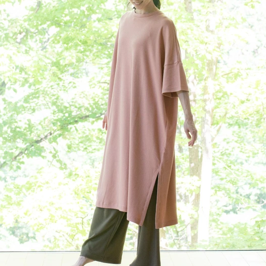 自然由来で、環境にも肌にも優しい草木染めのワンピース。ご近所へのお出かけでも使え、毎日活躍しそう。
