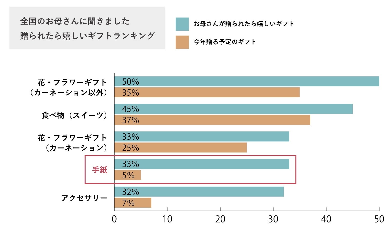 - “お母さんが贈られたら嬉しいもの”にランクインした意外なものは「手紙」