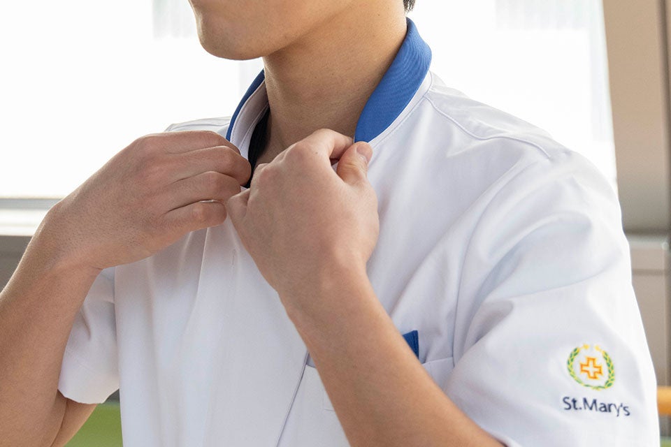 本ユニフォームのデザインは、そんな聖マリア病院で看護師として働く方々の業務効率を高めるとともに、モチベーション向上・働きがいを感じられる環境づくりを目指しました。「医療現場に、感性を。」というクラシコの想いと、聖マリア病院 看護部の皆様の想いを反映した設計により、現場での連携がスムーズになり、働く方々が誇りを持って着用できる一着が完成しました。