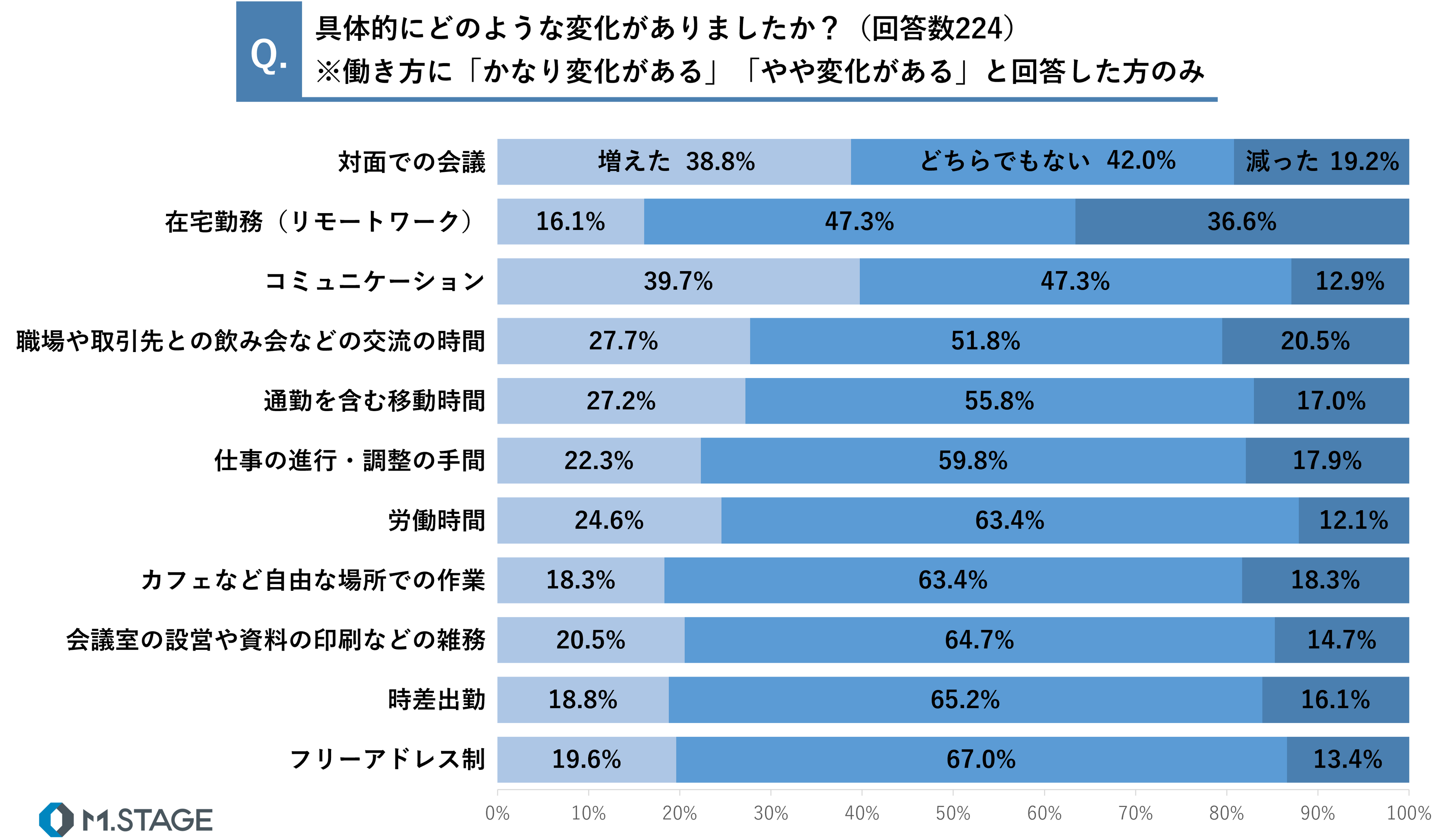 ・半数以上の会社員の働き方が変化、具体的な変化の項目は「対面での会議」がトップ
