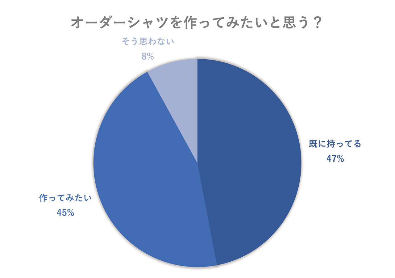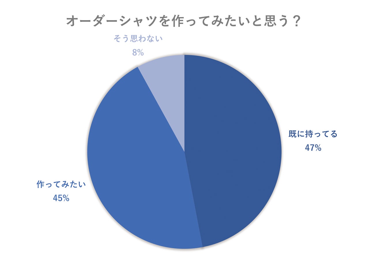 調査の結果では、5割がすでにオーダーシャツを持っていると回答。さらに、4割の人がオーダーシャツを今後作りたいと興味を持っており、オーダーシャツに対する注目が高まっていることが分かりました。