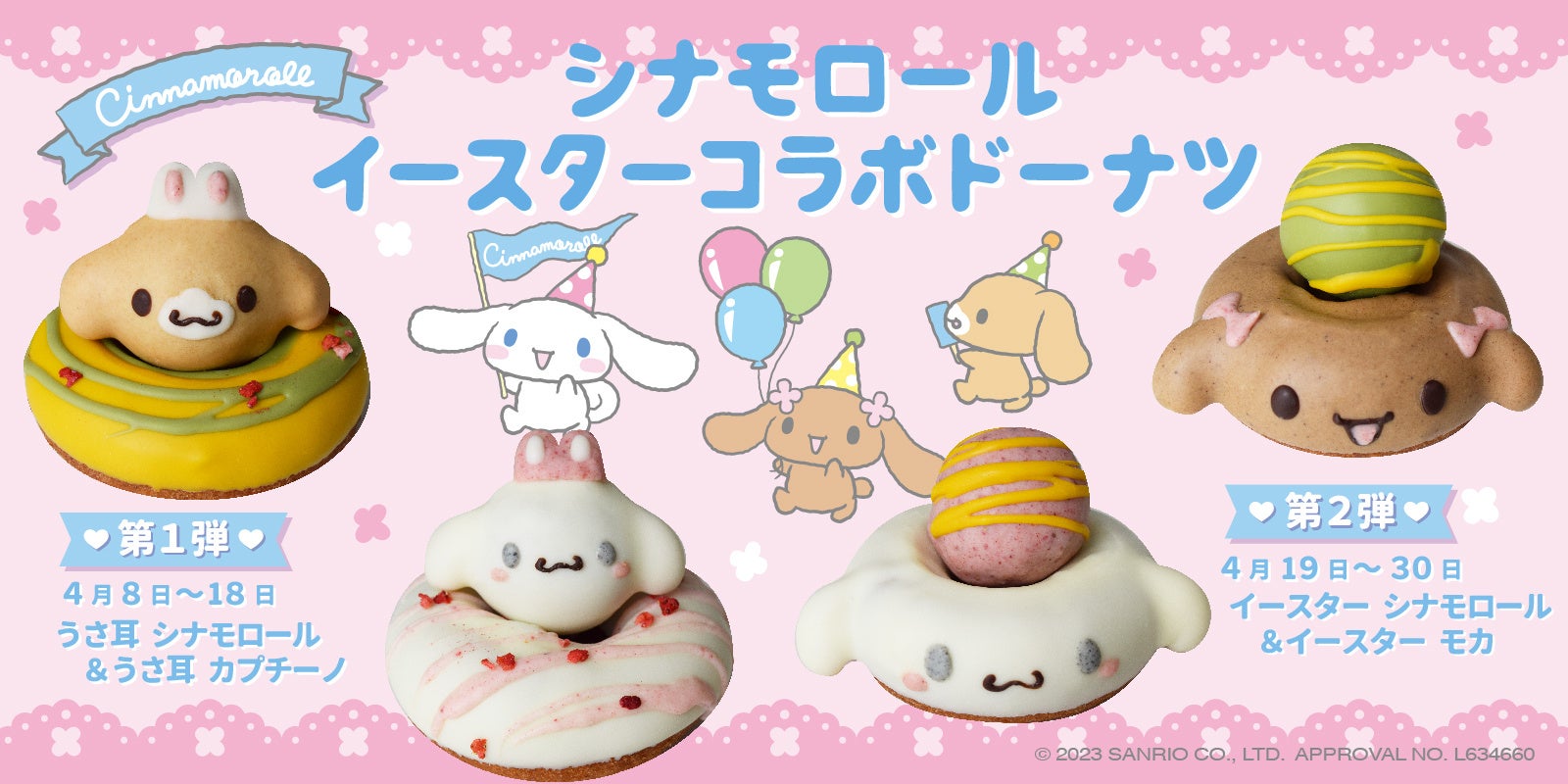 株式会社フロレスタ(本社:大阪市浪速区/代表取締役社長:辻尾吉厚)は、2023年4月8日(土)〜 30日(日)の期間限定で店頭及びオンラインストアにて「シナモロール イースターコラボドーナツ」を販売します。