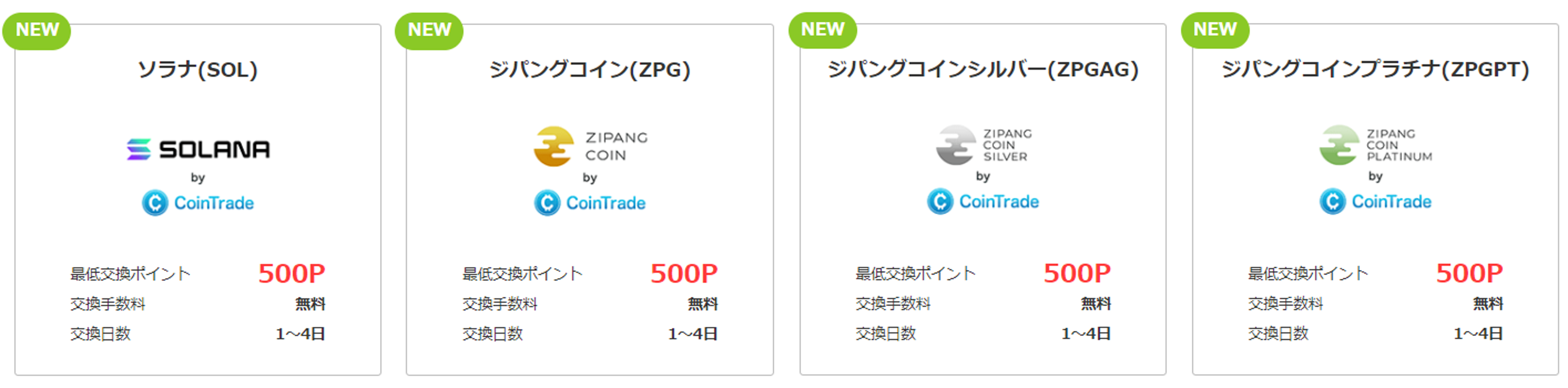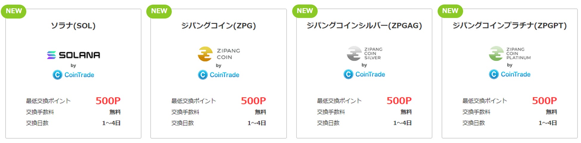 ・交換対象暗号資産 :ソラナ(SOL)、ジパングコイン(ZPG)、ジパングコインシルバー(ZPGAG)、ジパングコインプラチナ(ZPGPT)
