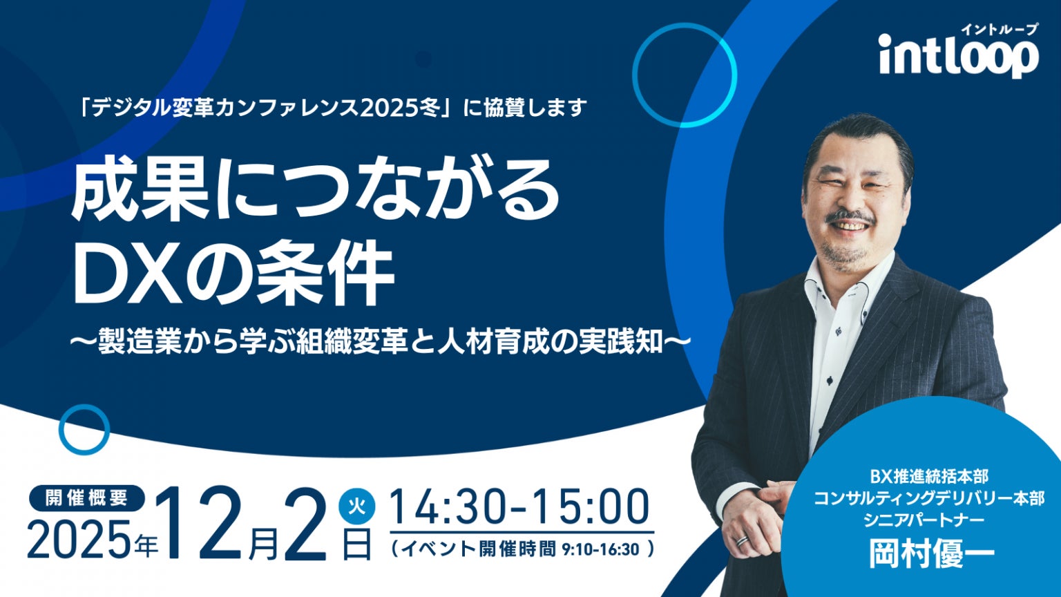 INTLOOP株式会社(本社:東京都港区、代表取締役:林 博文、以下 INTLOOP)は、DX推進に関わるエンドユーザー向けオンラインイベント「デジタル変革カンファレンス2025冬(開催日:2025年12月2日、主催:株式会社リバイバル・マネジメント・フォーラム事務局)」に登壇しました。