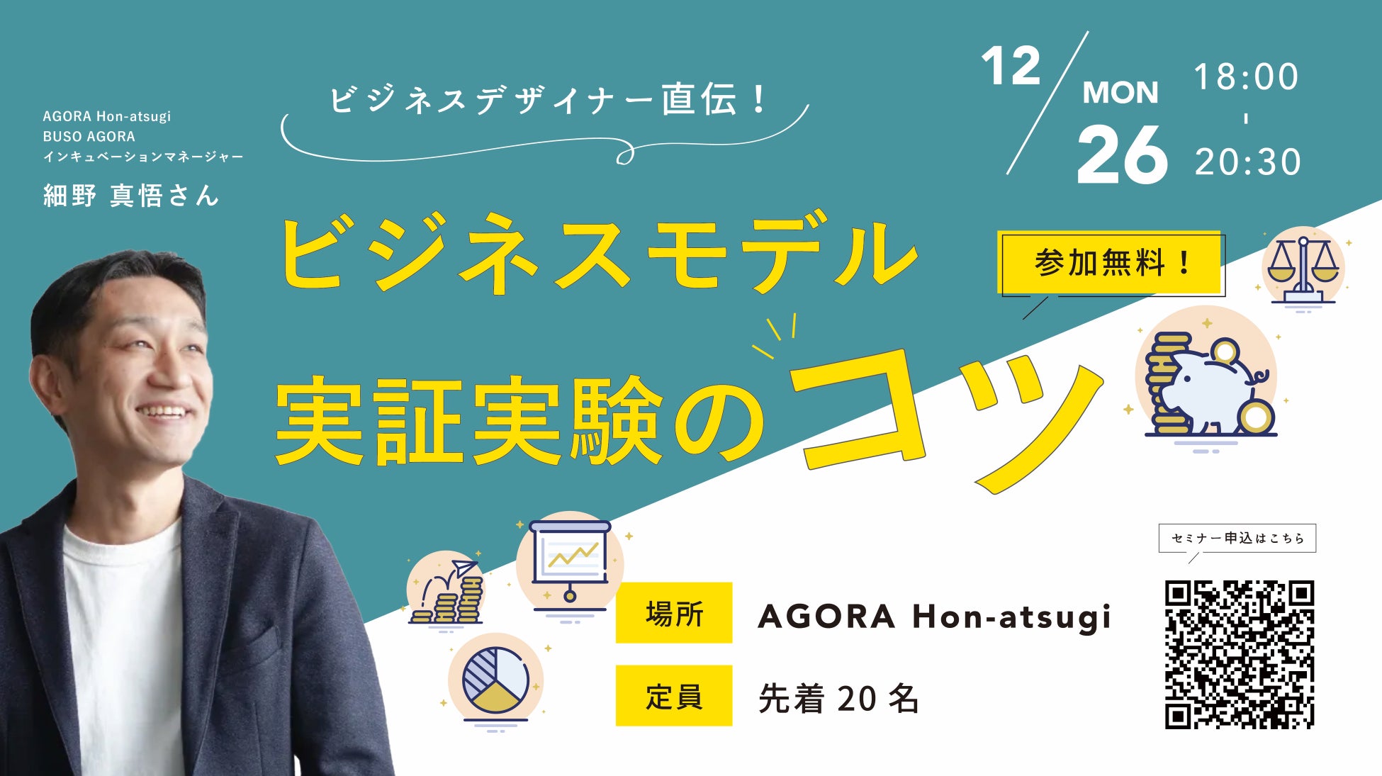 凄腕ビジネスデザイナー直伝の起業セミナー開催|コワーキングスペース&シェアオフィスAGORA本厚木でビジネスモデルの「実証実験のコツ」公開