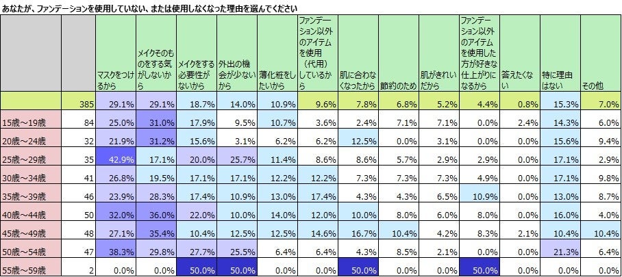 コロナ禍によるメイク品、使用実態の変化を調査。ファンデーション不使用者倍増の理由、「マスク着用」「メイクそのものをする気がなくなった」。
