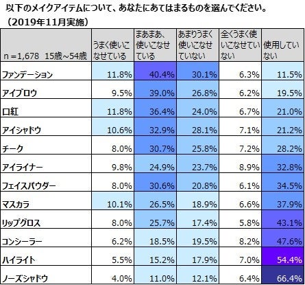 1.ファンデーションを使用していない女性、11.5%から21.3%に倍増。