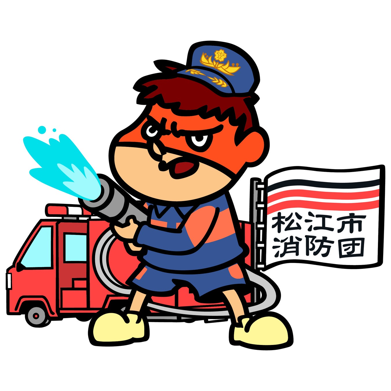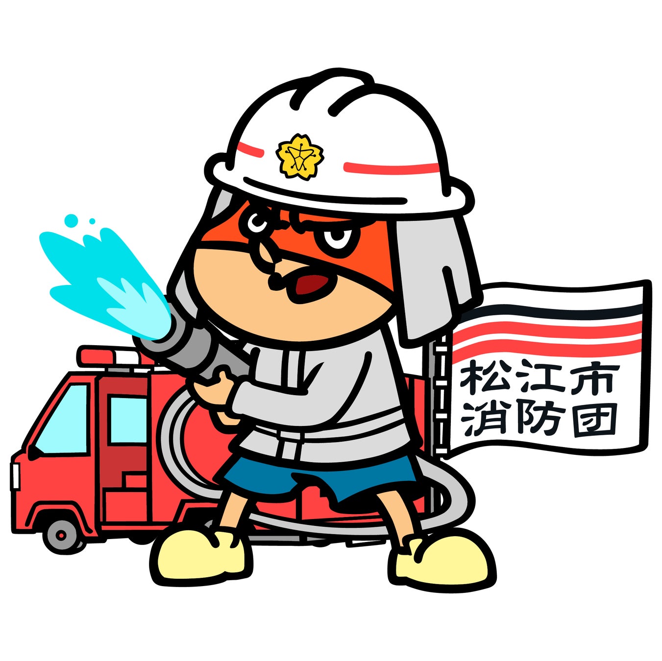 吉田くんは、松江市の消防団が新たに使用する消防車(軽積載車)5台の両後部座席ドア側面にデザインされています。