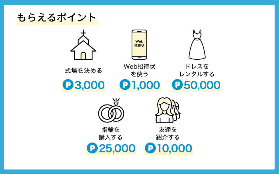 結婚準備のアクションに応じてポイントが付与されます。
