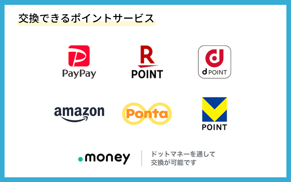 PayPayマネーライト / 楽天ポイント / dポイント / Amazonギフトカード / Pontaポイント /Vポイント