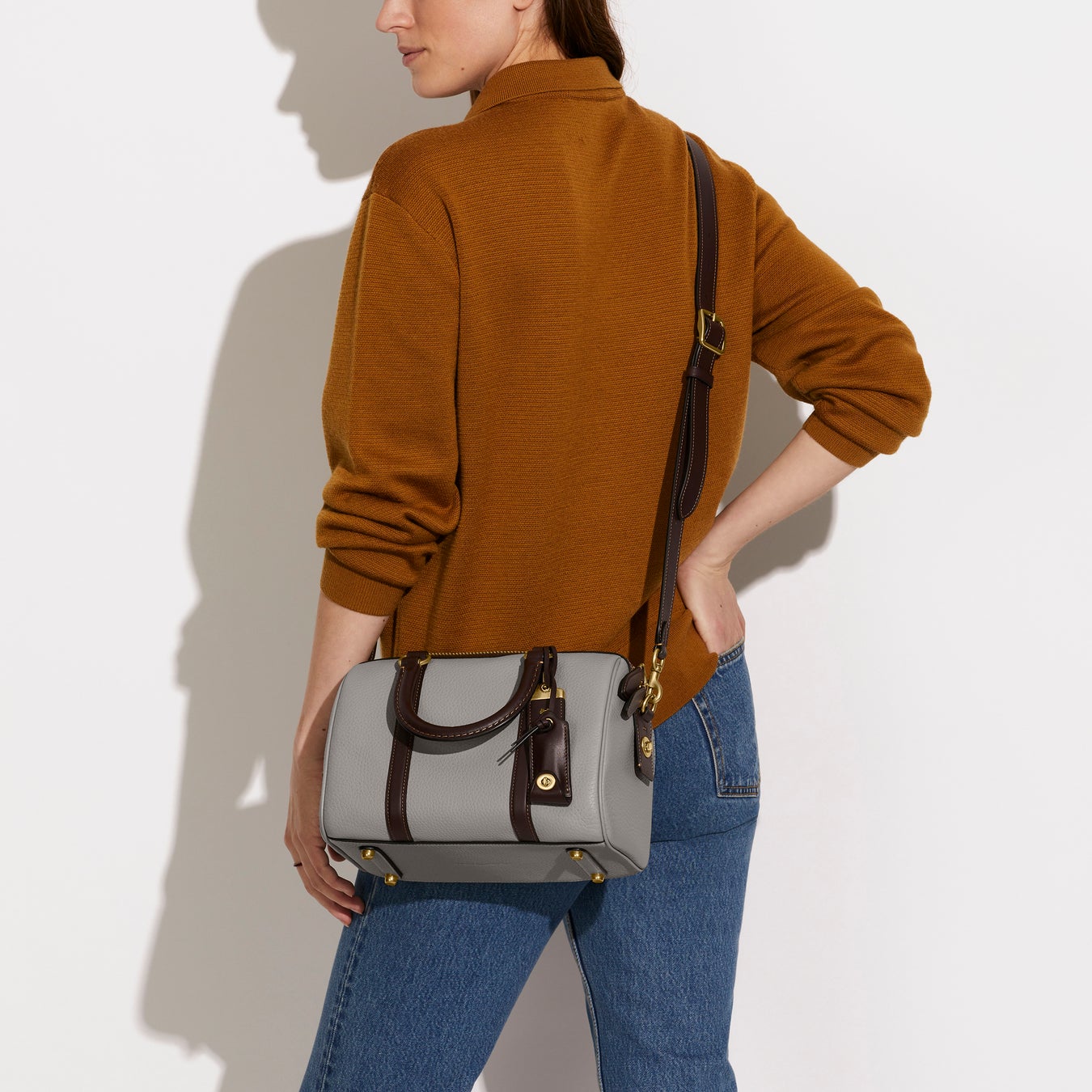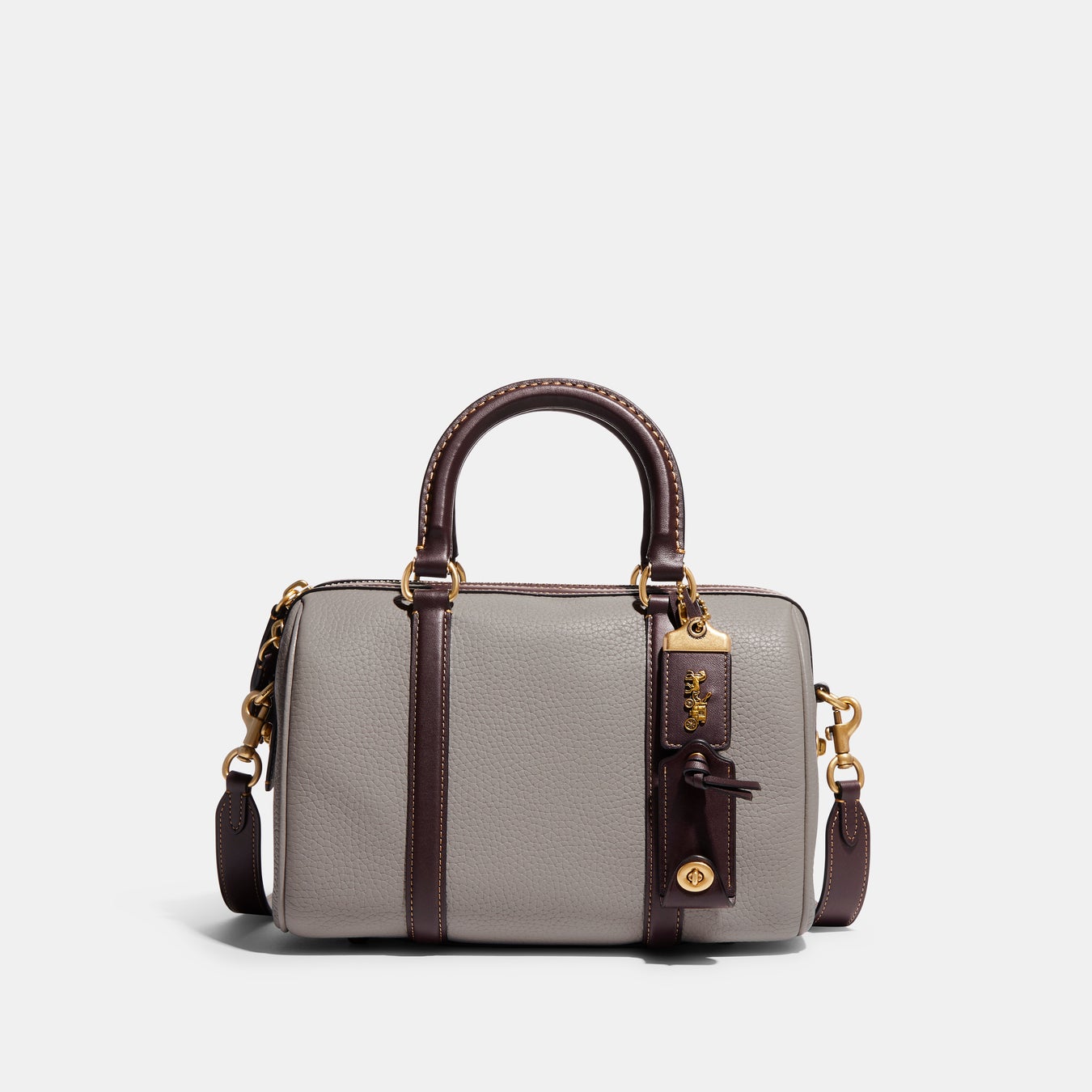 ナチュラル ペブル レザーと、しっとりとした質感が魅力のコーチを代表するグラブタン・レザーで仕上げたカラーブロック Rubyは、ホワイト、グレーに深いブラウンがアクセントカラーになったモダンなデザインが魅力です。