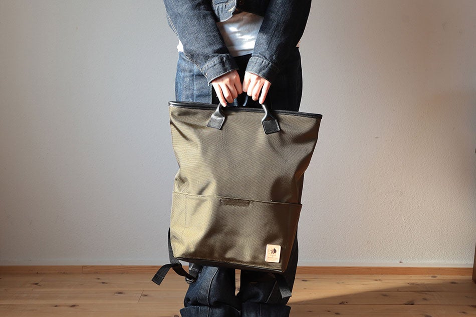 ヨットやアウトドア用品にも使われる1680デニールの糸を平織りにした生地の裏側にPVCをラミネートしたマグダス生地を使用。強度に優れた防水性素材は雨でもカバンの中身を守ります。