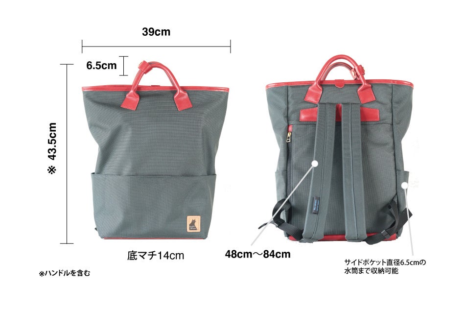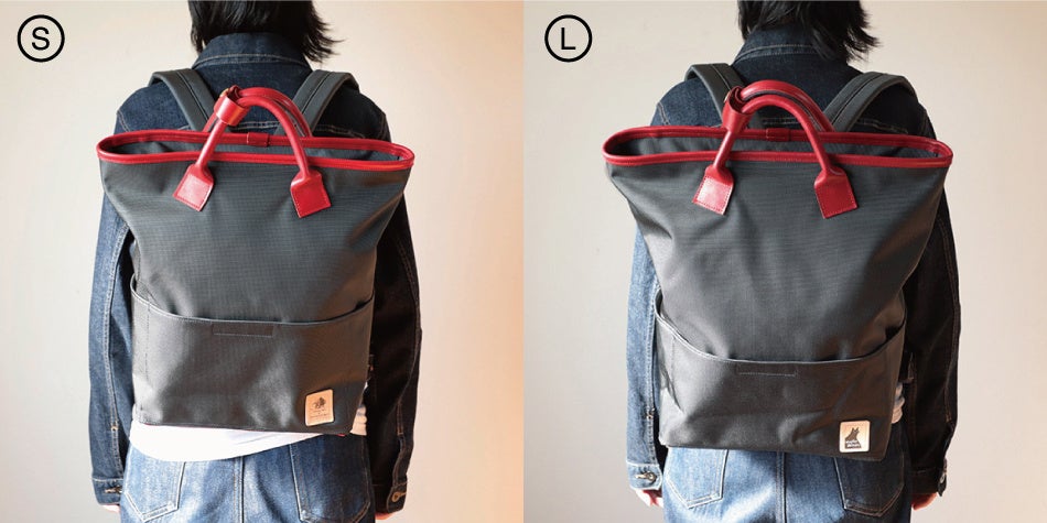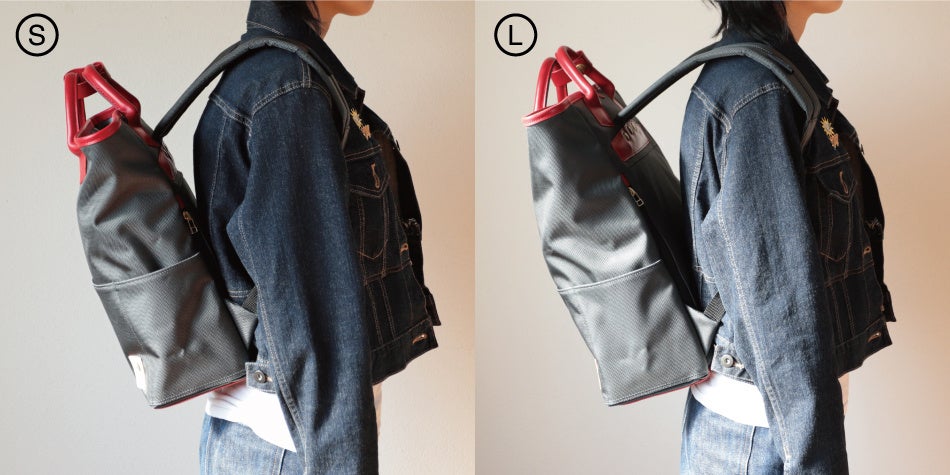 ・Lサイズ Sよりも横幅1cm、マチ幅が1cm、縦幅が5cm大きくなっているので、よりたくさんの荷物を身軽に持ち運びたい方へオススメです。