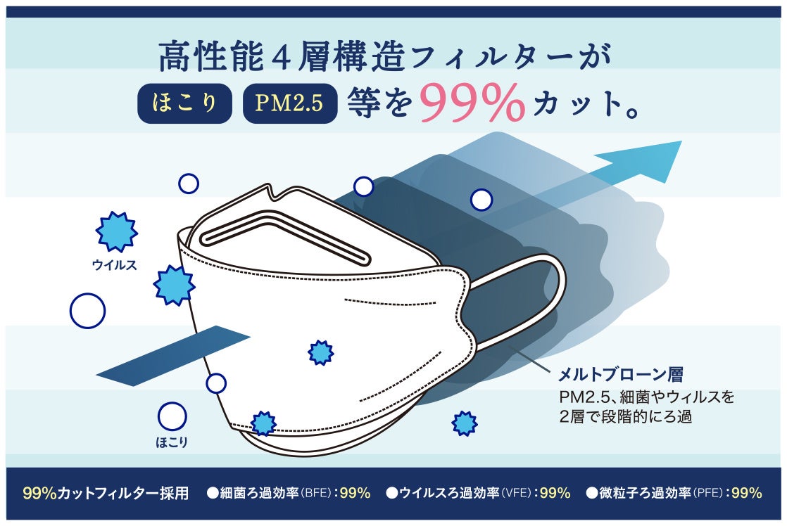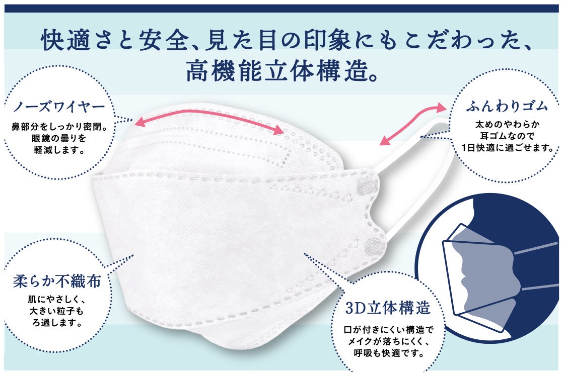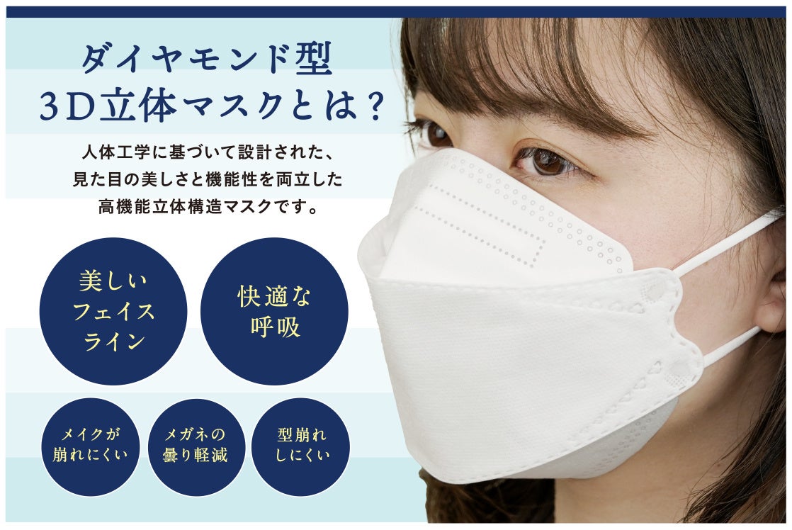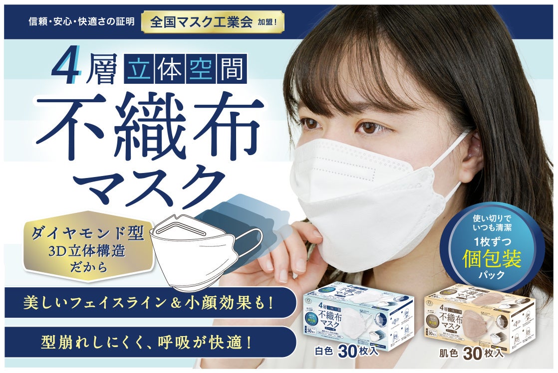 【暑い季節におすすめなマスク】呼吸しやすいダイヤモンド型3D立体構造「4層立体空間 不織布マスク」新発売