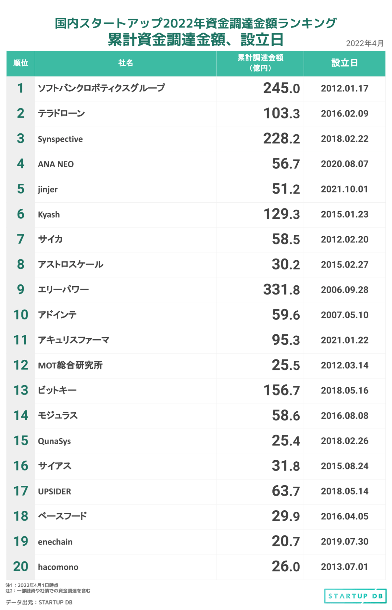 レポート記事:STARTUP DB (https://startup-db.com/magazine/category/research/funding-ranking-202203)