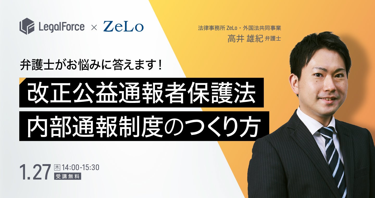 1/27(木)14:00~ 「弁護士がリアルなお悩みに答えます!改正公益通報者保護法に基づく内部通報制度のつくり方」セミナーを開催