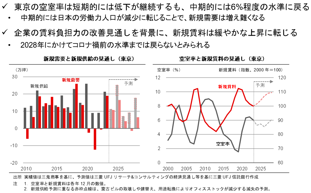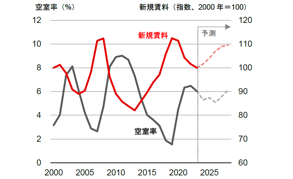 東京の空室率は短期的には低下が継続するも、中期的には6%程度の水準に戻る見込み
