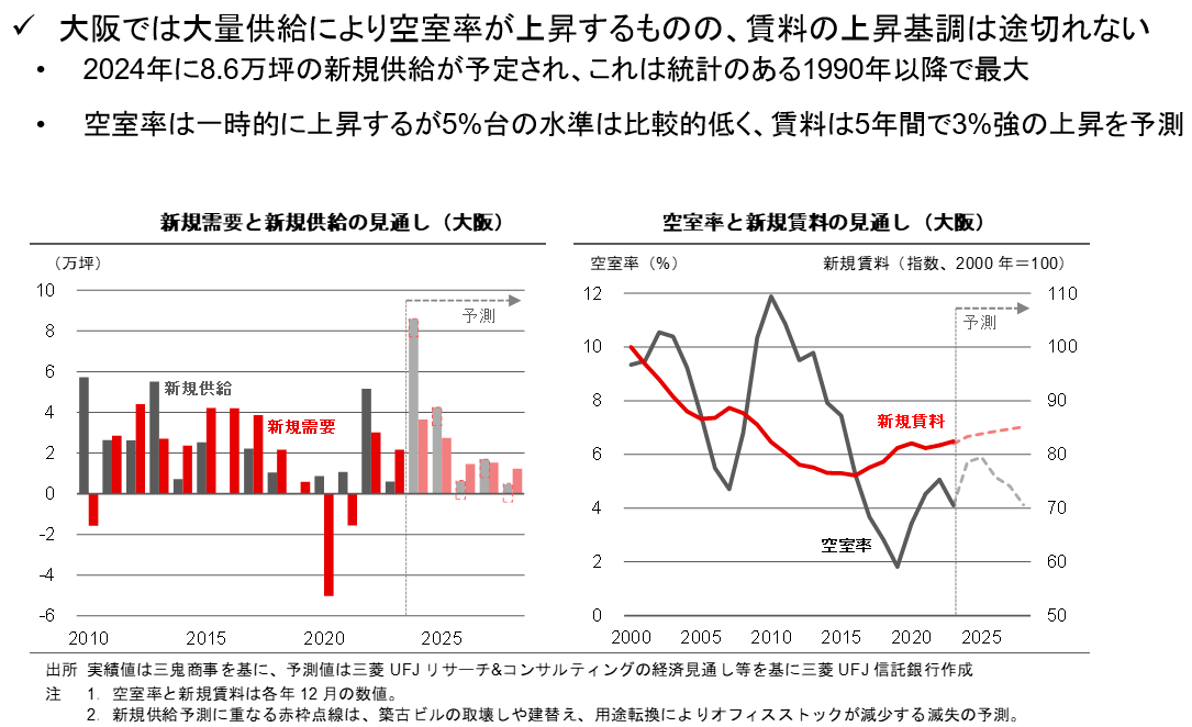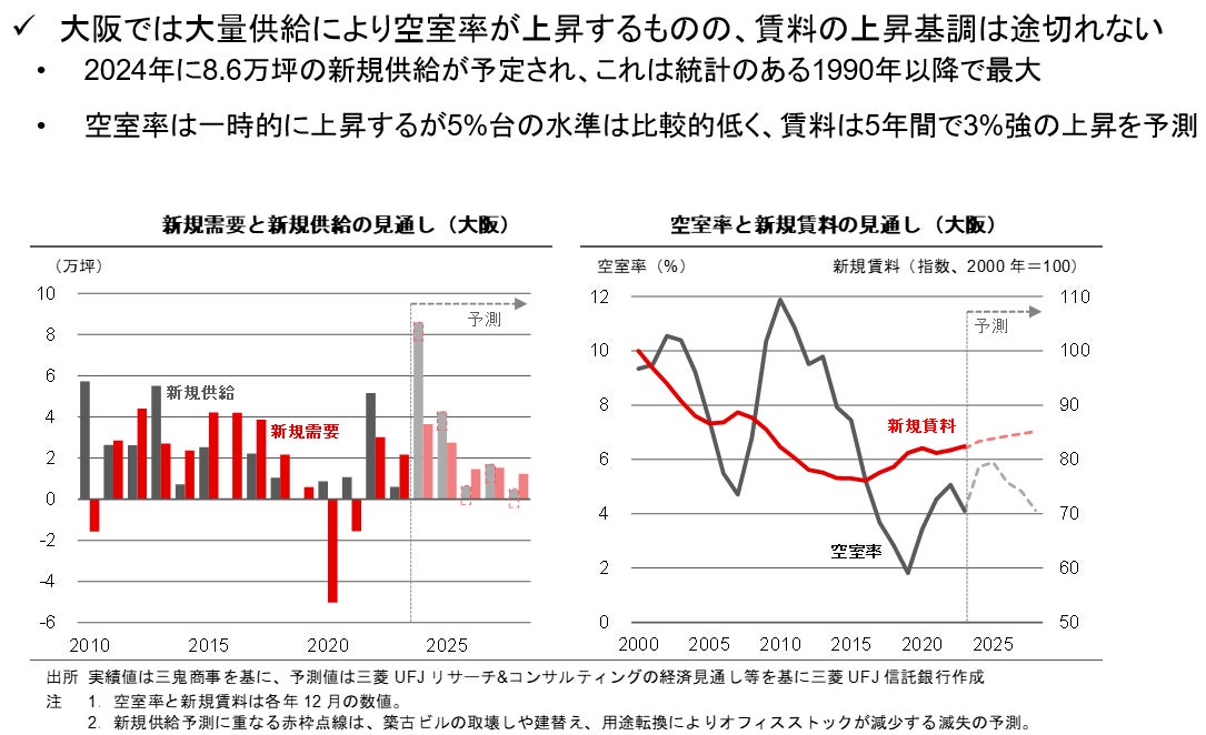 大阪では大量供給により空室率が上昇するものの、賃料の上昇基調は途切れない見通し