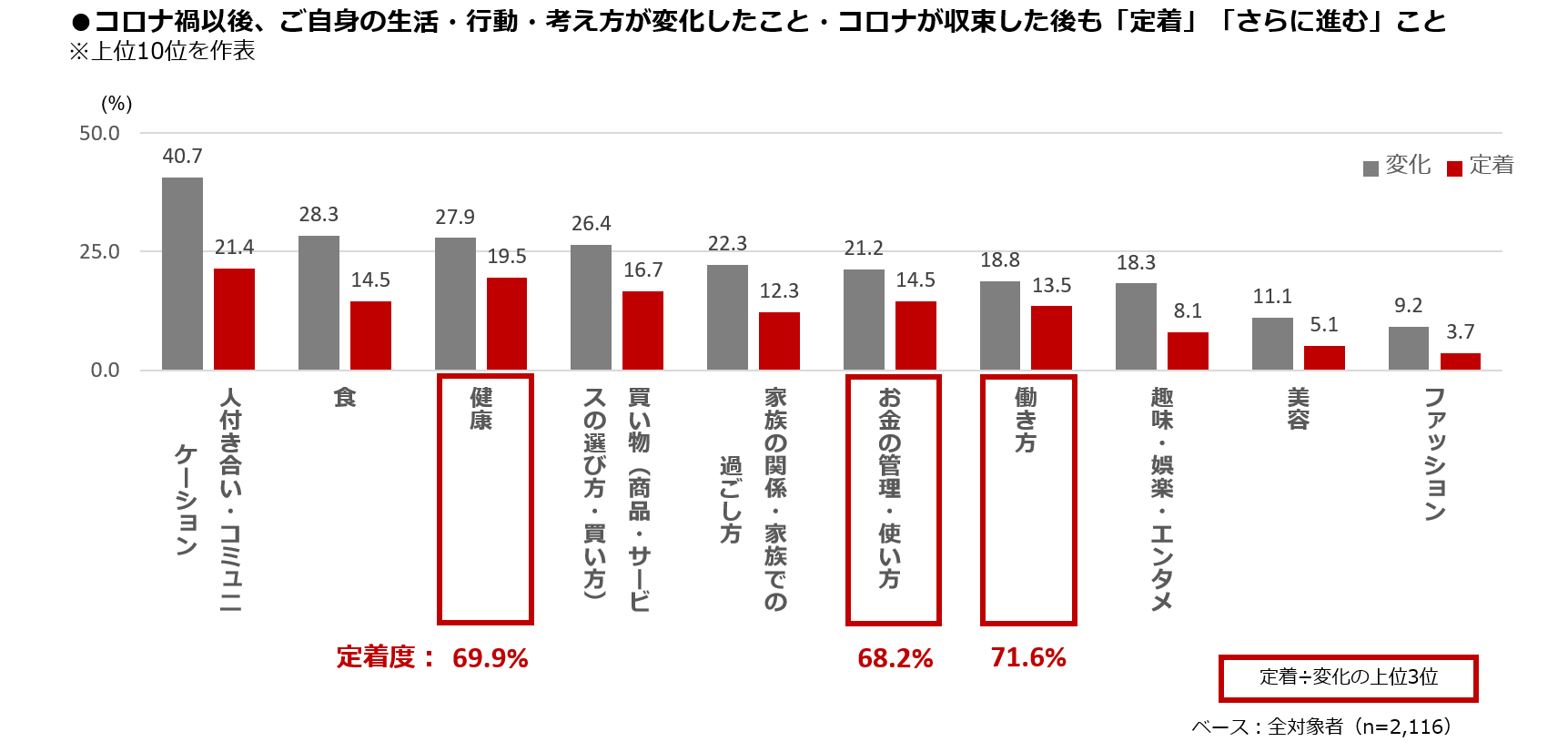 *定着度:「変化した」と回答した人の中で、「定着する」と回答した人の割合。割合が高ければ定着度が高いと解釈。