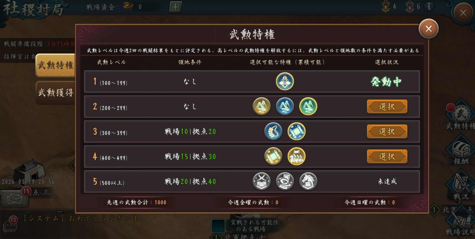 「社稷対局」に新機能「武勲特権」が追加されます。毎週開放される任務をクリアすることで「武勲」を獲得でき、累計武勲が一定値に達すると、ゲームプレイが有利になる様々な特権バフを解放できます。日々の任務を積み重ね、覇道への足掛かりとなる特権を手に入れましょう。