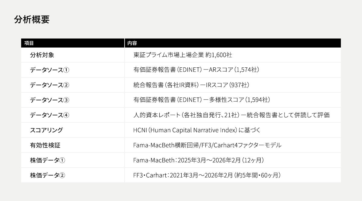 これらの検証結果は、人的資本開示の「語りの質」が市場評価に関連する可能性を示す初期的なエビデンスであり、HCNIが企業の実態を捉える指標として一定の有効性を持つことを示唆しています。