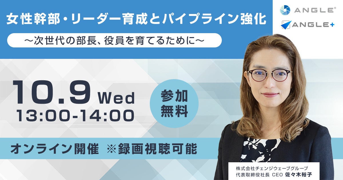 10月9日に開催するオンラインセミナー「女性リーダー育成とパイプライン強化~部長、役員を育てるために~」では、アンコンシャス・バイアスプログラム「ANGLE」のデータも交えながら、女性リーダー登用の課題と重視すべきポイントについてお伝えします。