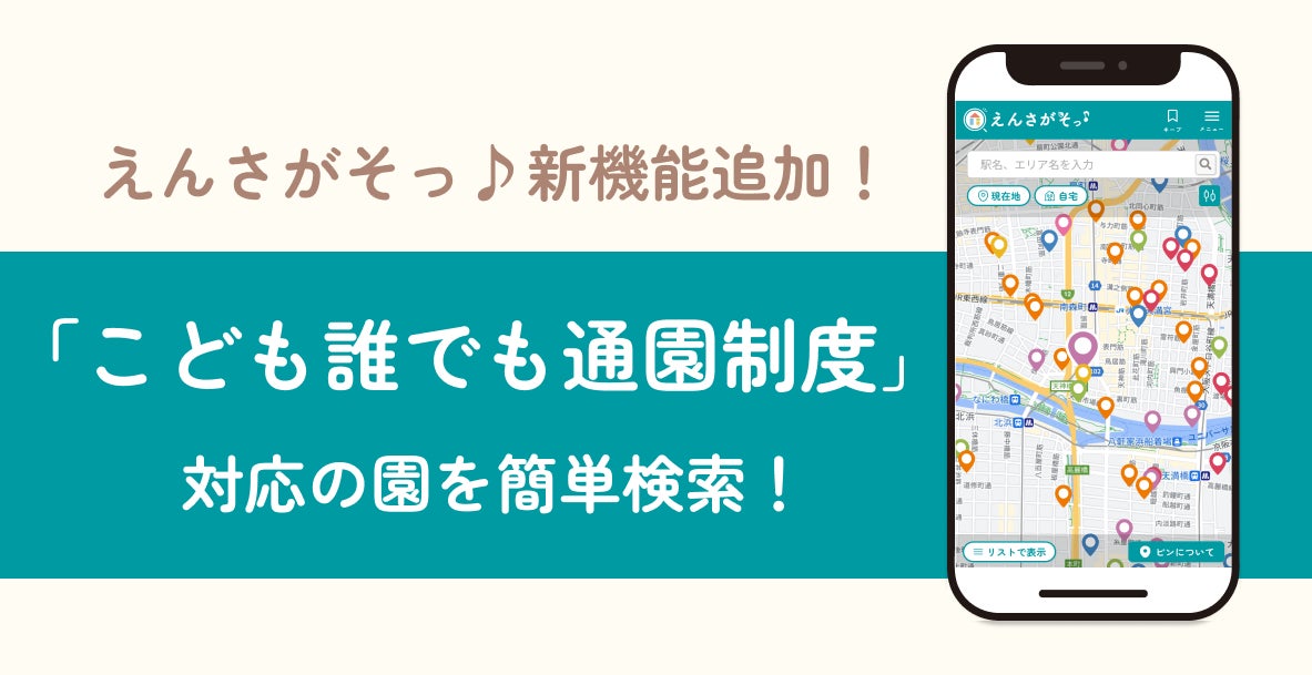 BABY JOB株式会社(本社:大阪府大阪市)は、月間約40万人が利用する保育園探しポータルサイト「えんさがそっ♪」に、国が進める「こども誰でも通園制度」を試行している全国の保育施設を簡単に検索できる新機能を追加しました。この機能により、同制度をより利用しやすくし、孤独な子育てを減らしたいと考えています。