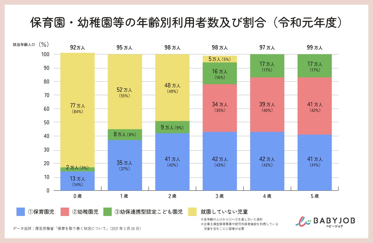 厚生労働省のデータによれば、未就園の0~2歳児は推計177万人に達し、全体のおよそ60%を占めています。自宅保育を自ら選択している家庭もある一方で、就園したくてもできない家庭も少なくありません。