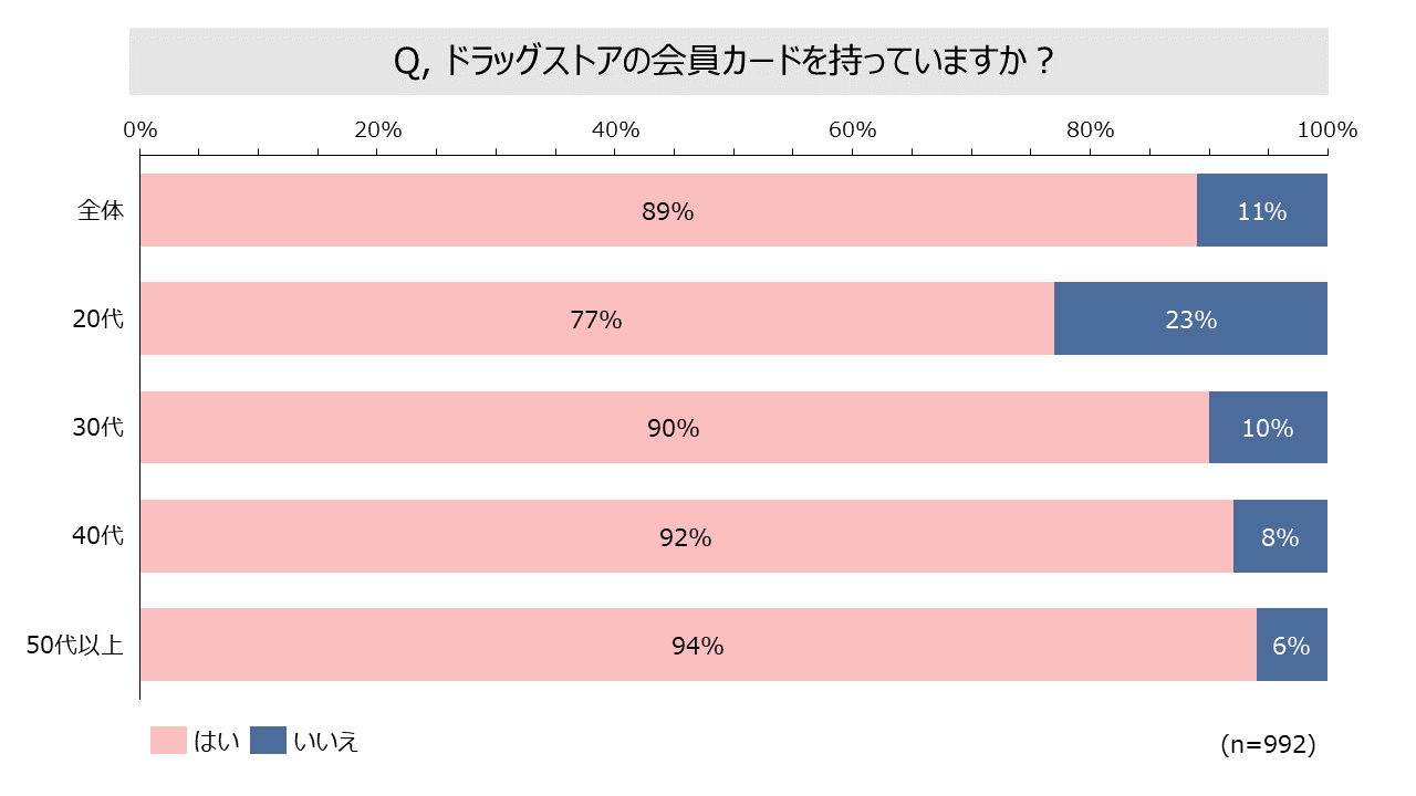 ドラッグストアについての意識調査 98%が月に1回以上利用、会員カード89%、アプリ78%が所有。