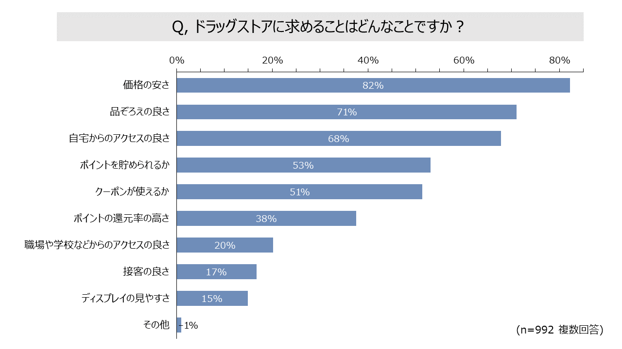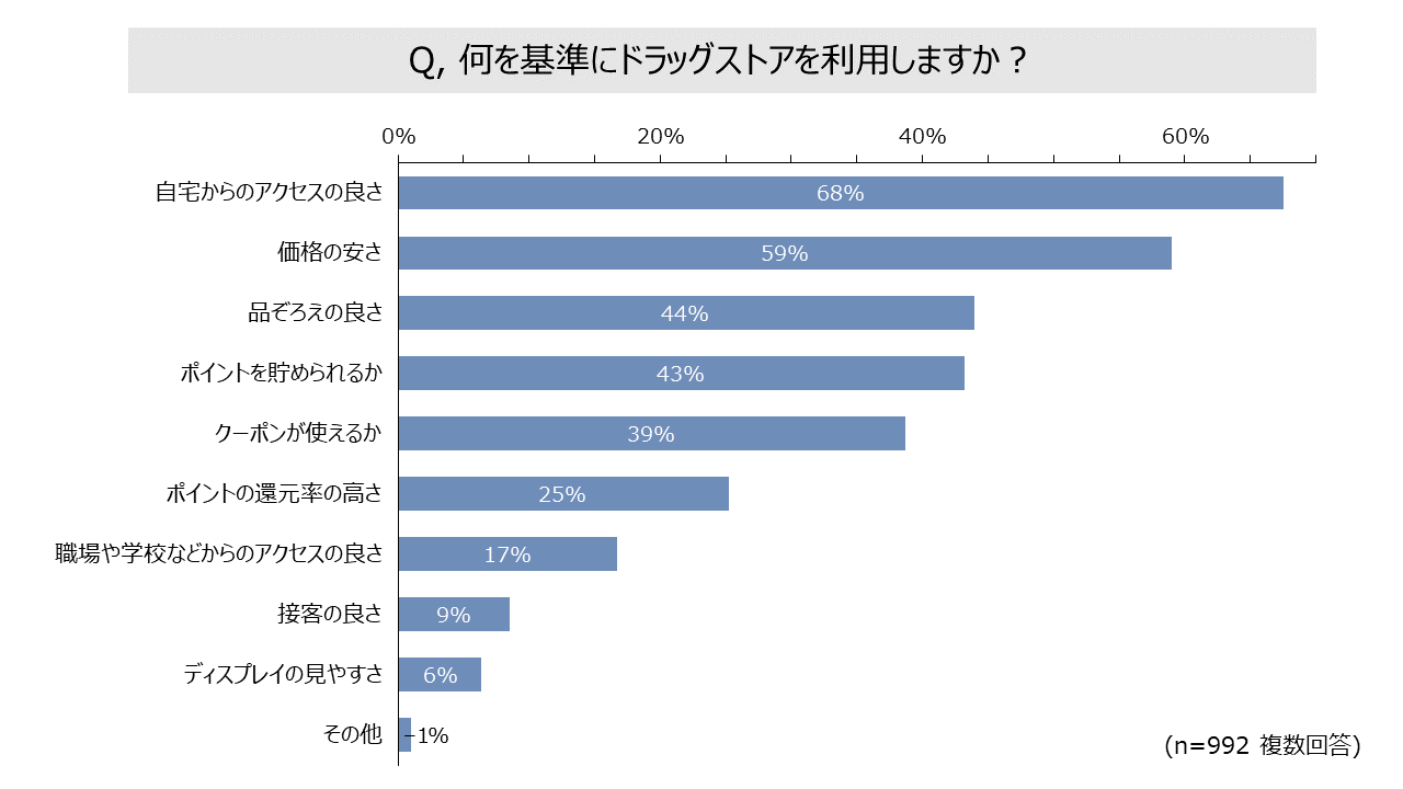 国内最大級の顧客満足度向上プラットフォーム「ファンくる」を運営する株式会社 ROI(本社:東京都千代田区 代表取締役社長:山口敬人)は、「ファンくる」会員を対象に、定期的に消費者の意識調査を実施しています。今回はドラッグストアについての意識調査(有効回答者数992名)を2023年1月19日~1月23日に実施しました。