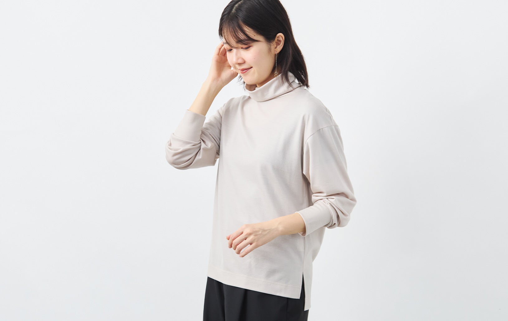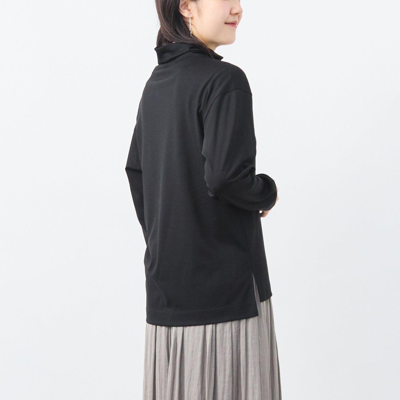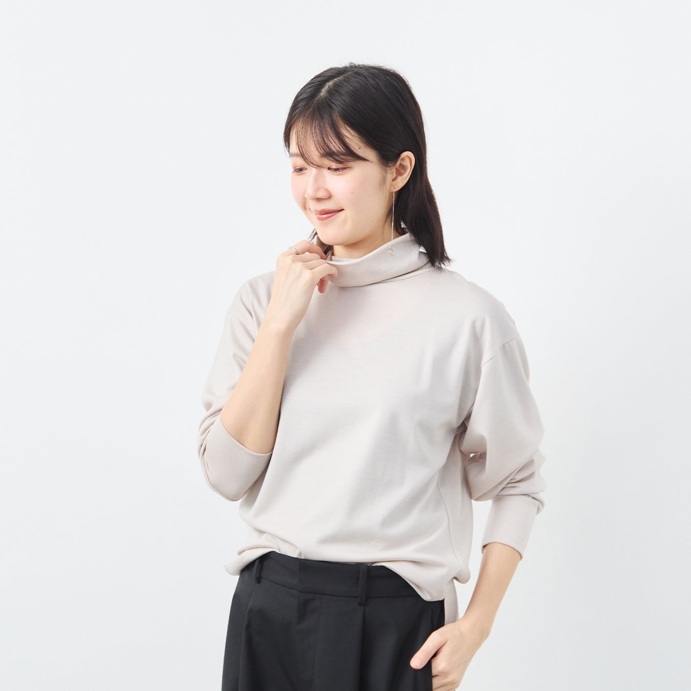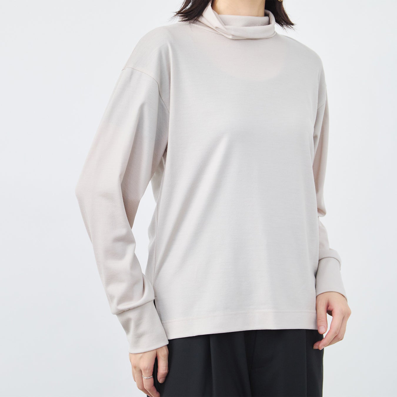 くたびれる事なく、この冬中、清潔感のある立体的なタートルネックに見せてくれます。