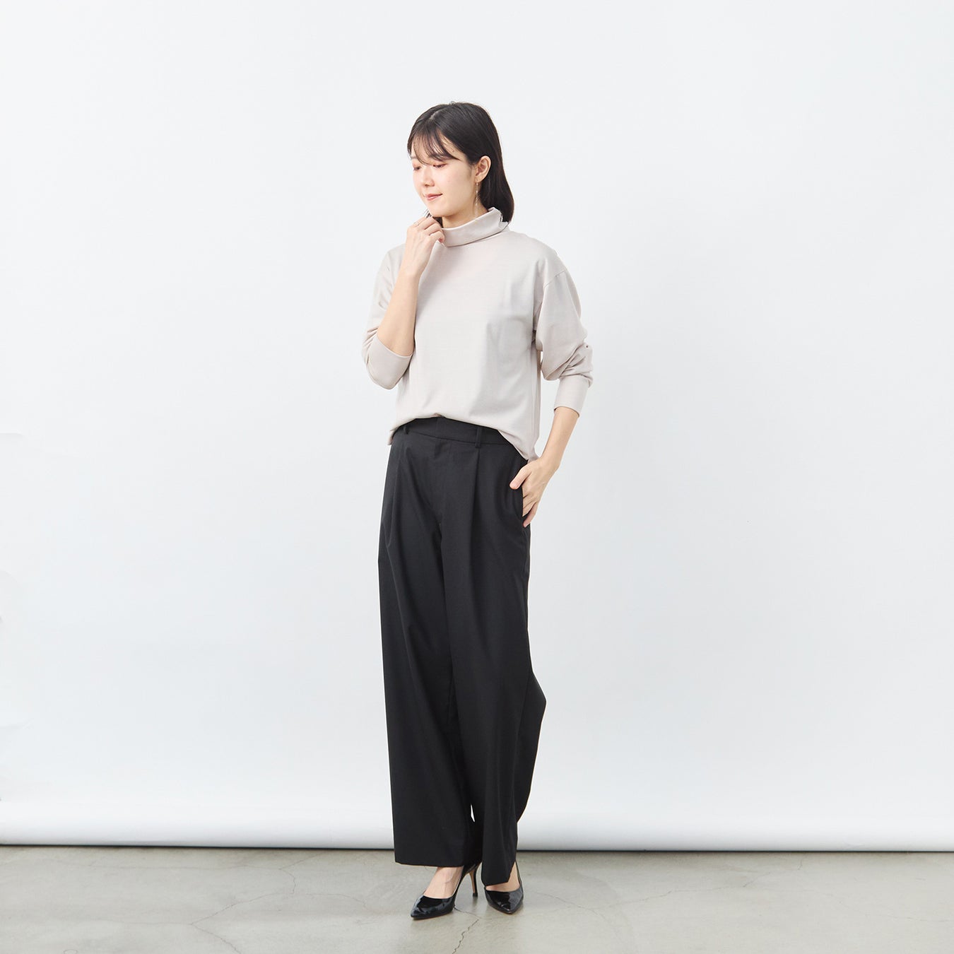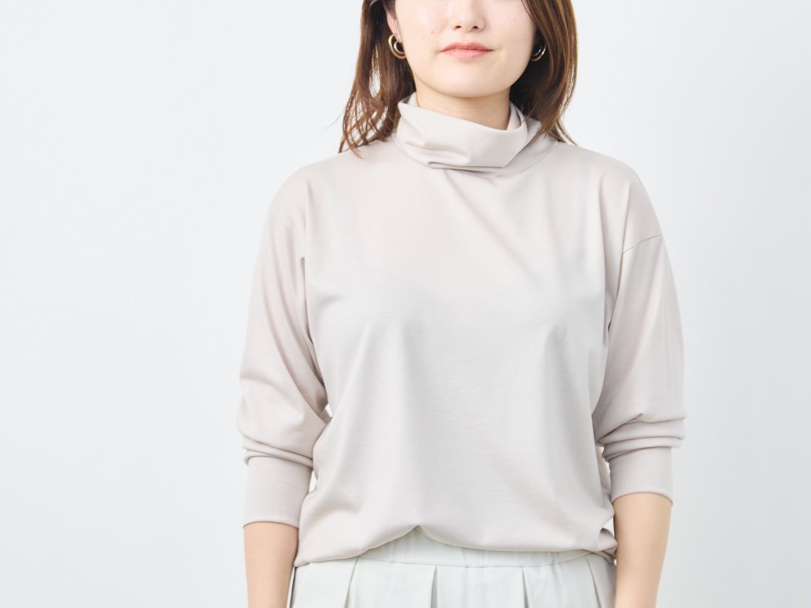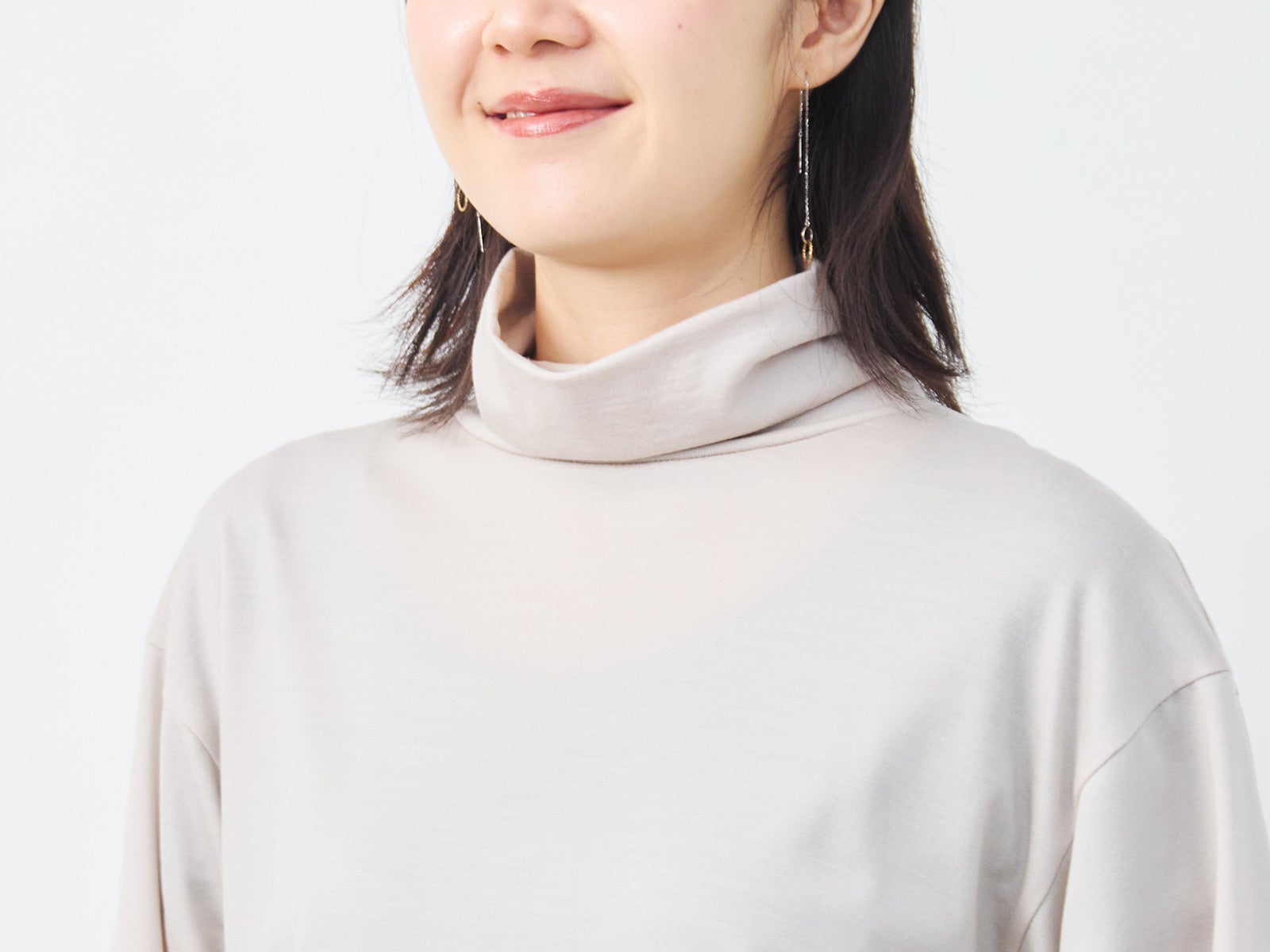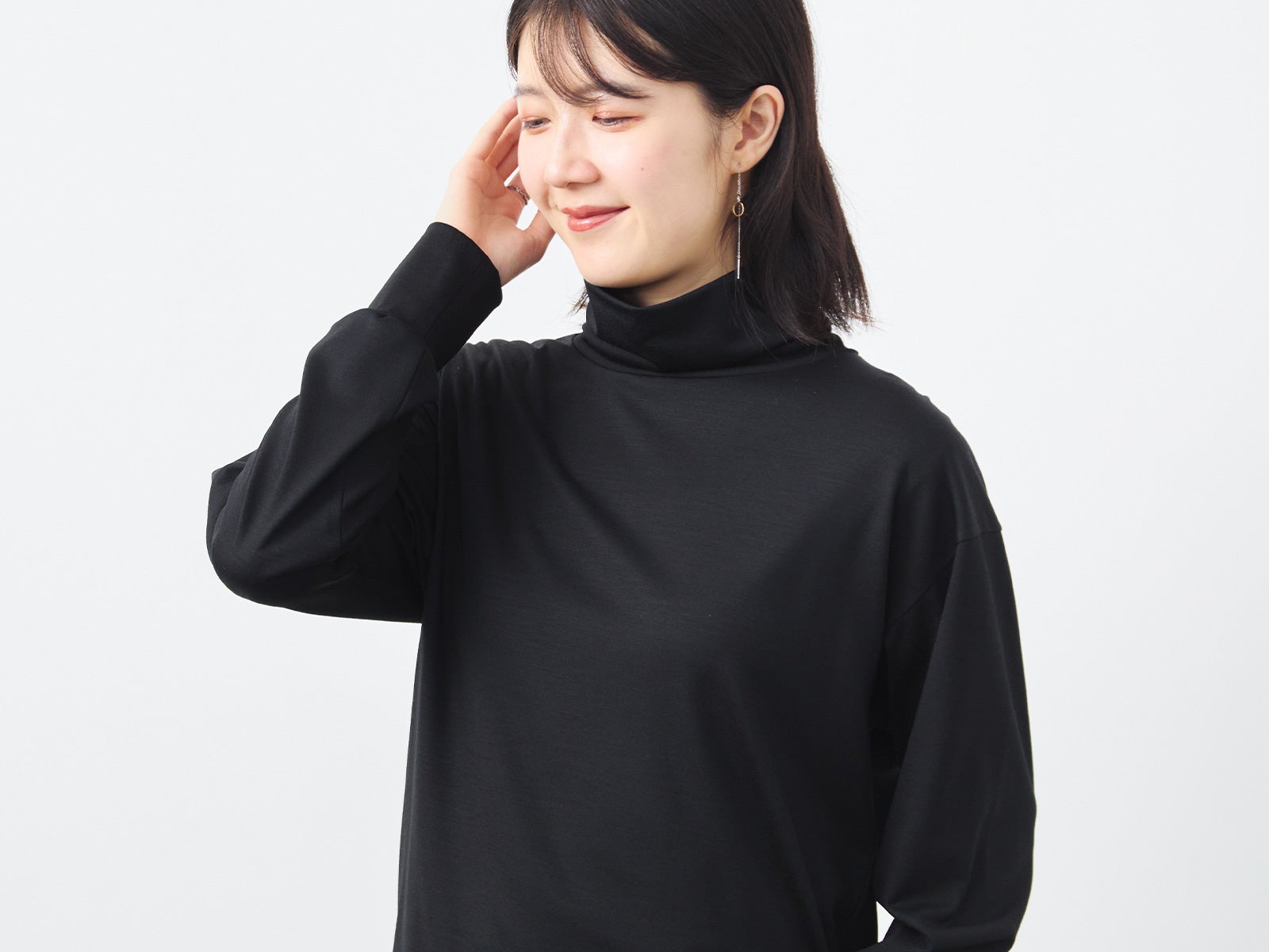 くたびれる事なく、この冬中、清潔感のある立体的なタートルネックに見せてくれます。